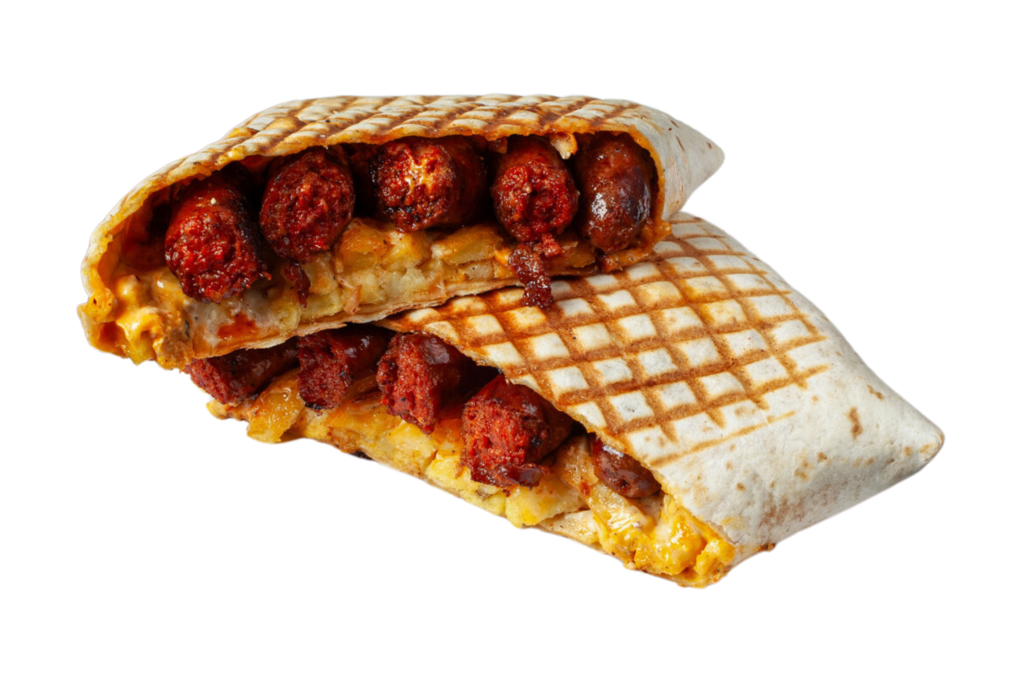 Unser Merguez Taco kombiniert Pommes, würzige Merguez-Wurst, geschmolzenen Käse, frischen Salat und unsere hausgemachte Special-Soße. Ein Muss für Liebhaber feuriger Aromen!