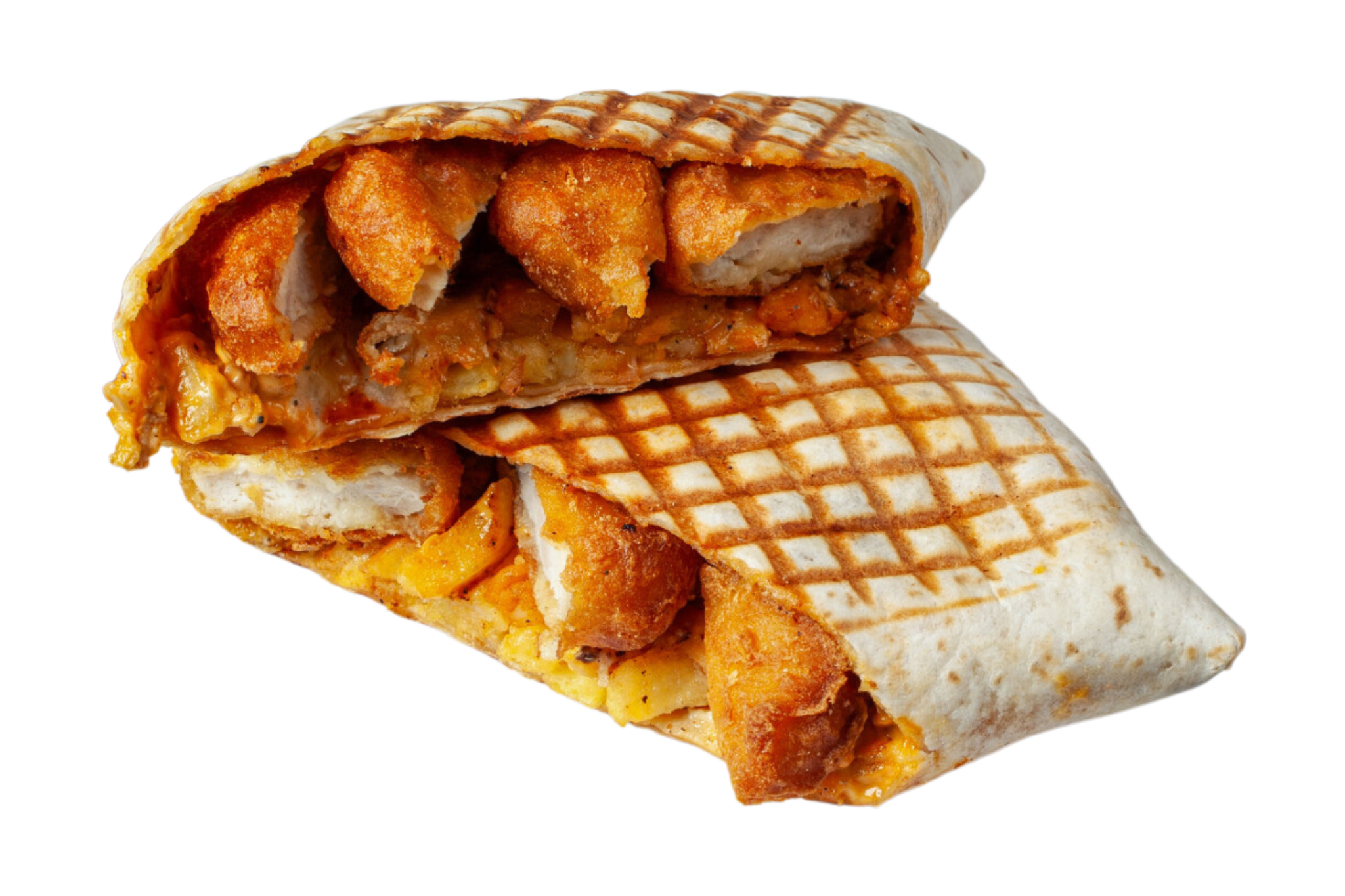 Unser Nugget Taco ist perfekt für alle, die es knusprig mögen! Mit goldbraunen Nuggets, Pommes, geschmolzenem Käse, frischem Salat und unserer hausgemachten Special-Soße.